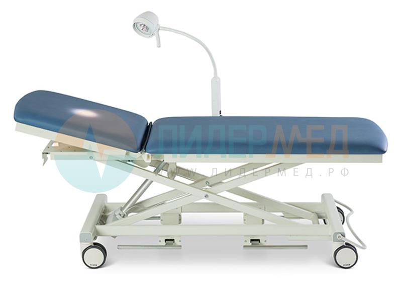Электрический смотровой стол нового поколения с предельно низкой высотой предназначен для ЛПУ разного направления.- двухсекционное ложе шириной 70 см (общая ширина 75 см)- ручной пульт управления- электропривод высоты и спинной секции- спинная секция с возможностью регулировки вверх вручную- держатель одноразовых простыней с разрезывающим устройством- адаптер для размещения инфузионной стойки- колеса с индивидуальной блокировкой Ø125мм