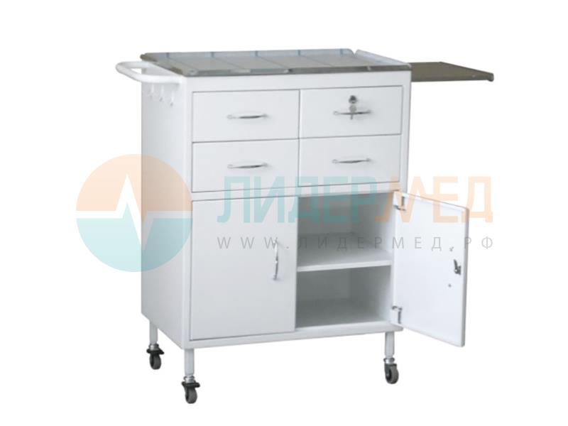 Столик для перевязочных отделений передвижной (анестезиолога). 4 ящика: 1 - с замком, 2 дверки, столешница — нержавейка.
