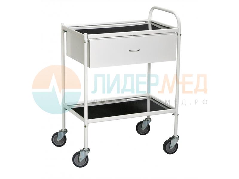 Передвижной металлический столик МСК-548 с двумя полками и выдвижным ящиком предназначен для оснащения стоматологических, смотровых процедурных кабинетов больниц и поликлиник.
