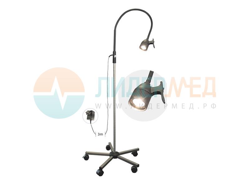 Передвижной галогенный светильник с мобильным основанием на 5-ти колесах, из высококачественной нержавеющей стали предназначен для кабинета гинеколога, уролога, отоларинголога, офтальмолога, как дополнительный источник света при малоинвазивных операциях.