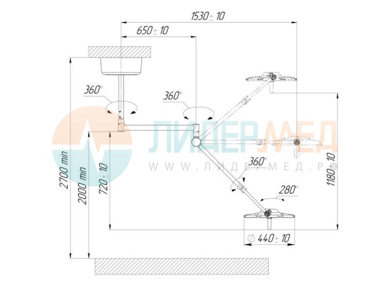 Минимальное значение высоты помещения (при расстоянии от пола до подвеса 2000мм), мм