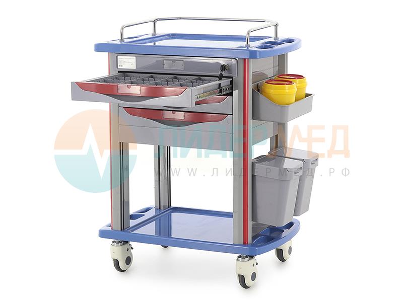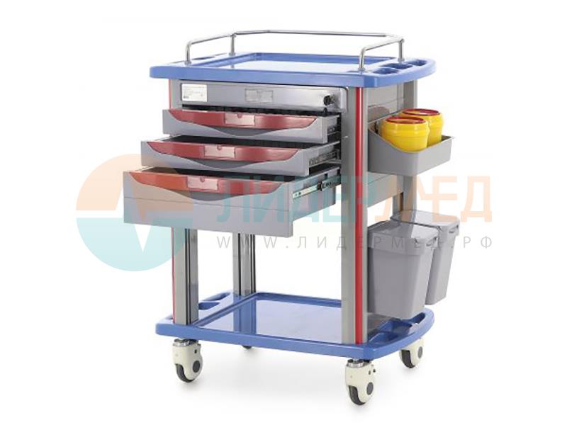 Многофункциональная медицинская тележка предназначена для транспортировки и хранения медицинских инструментов и оборудования внутри медицинского учреждения.
