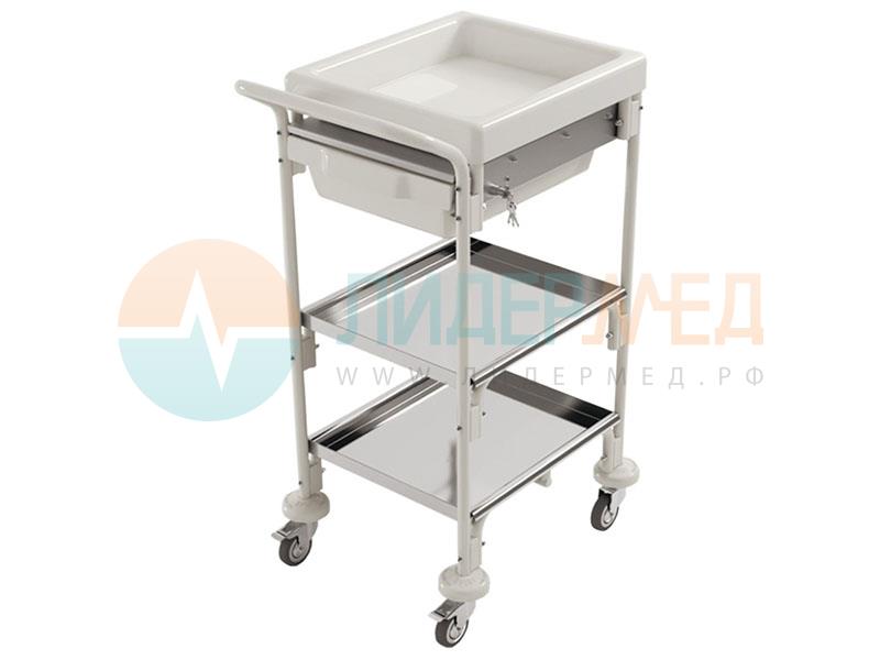 Тележка предназначена для размещения медицинских изделий, выполнения услуг инвазивных вмешательств в условиях ЛПУ.
