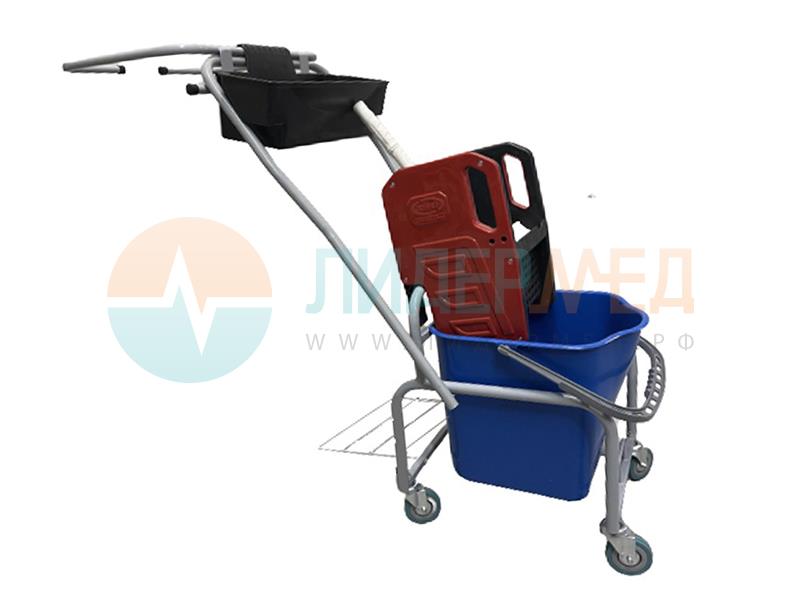Удобная уборочная тележка предназначена для использования персоналом в медицинских или других общественных помещениях.