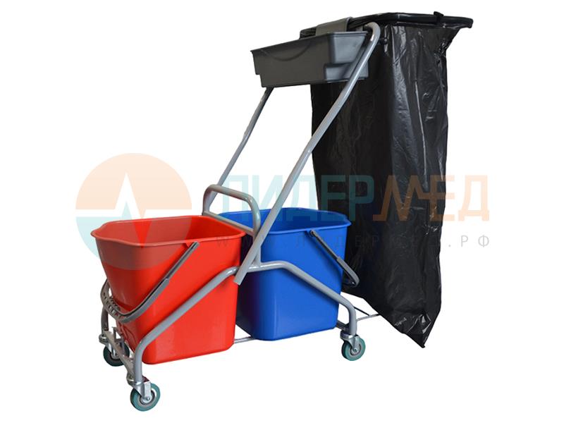Тележка уборочная предназначена для комплексной уборки помещений в том числе в медицинских кабинетах и приемных. С держателем мусорного мешка, колеса оснащены тормозом. Каркас выполнен из стали. Оснащена поворотными колесами с защитными бамперами. Ведро имеет отметку литража, изготовлено из прочного пластика. Лоток для вспомогательных средств. Рукоятка перекидная.