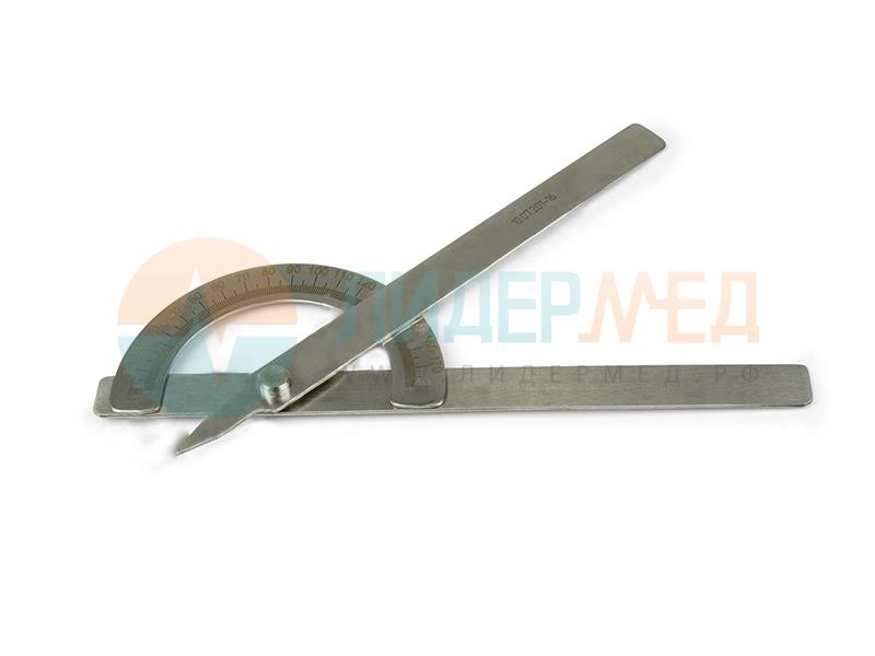 Угломеры предназначены для измерения углов движений в суставах, а также для определения кривизны оси конечности и позвоночника у взрослых и детей. Материал – нержавеющая сталь. 1. Угломер большой – дл. 370мм; 2. Угломер малый – дл. 210мм.