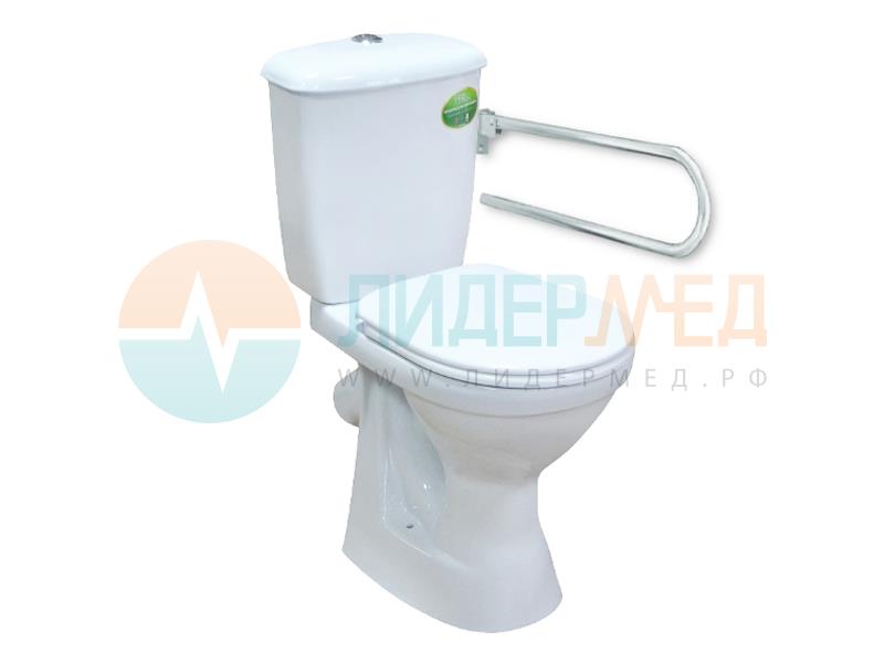Высокий унитаз, с высотой чаши с сиденьем 47 см для людей с особыми потребностями. С одним белым окрашенным откидным поручнем или с одним откидным поручнем из нержавеющей стали.