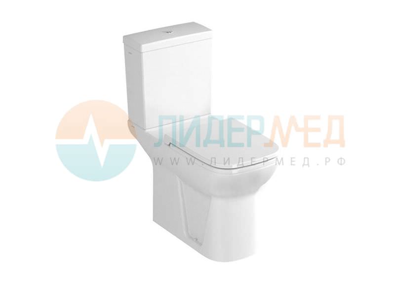 Напольный унитаз-компакт для людей с ограниченными двигательными возможностями в комплекте с сидением и крышкой.