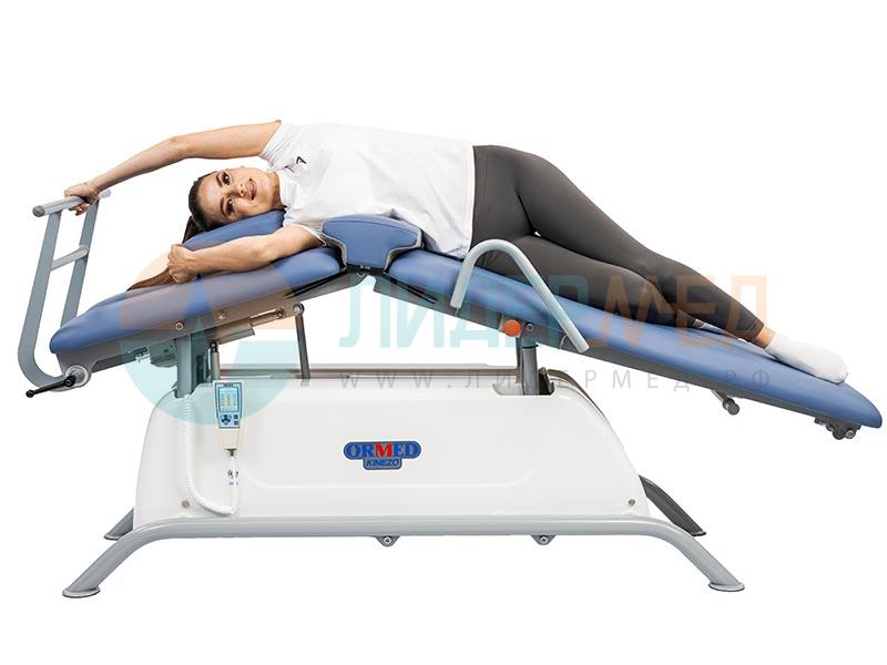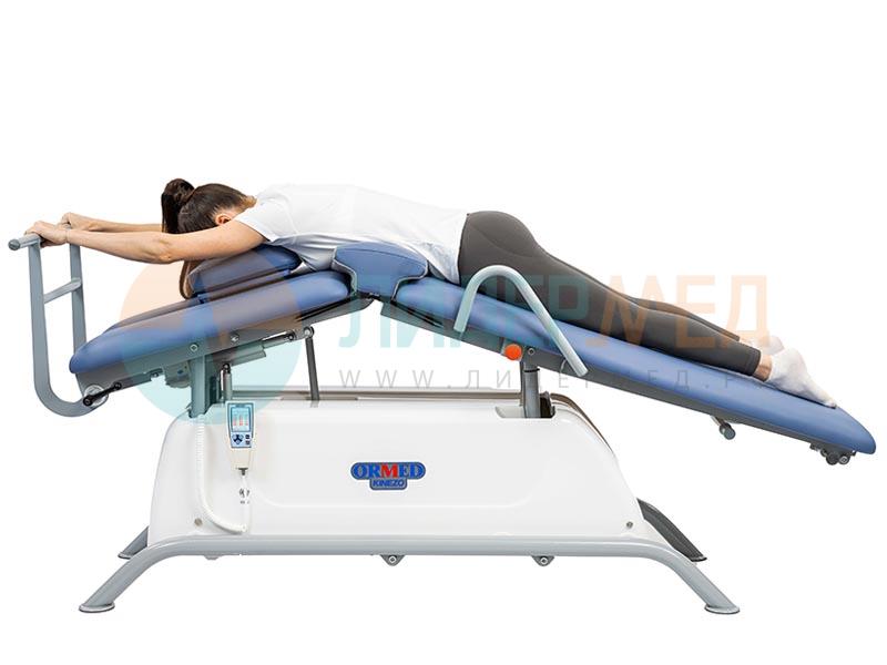 Установка для активно-пассивной механотерапии позвоночника.Предназначена для дозированного динамического изменения углов между звеньями позвоночника при сгибании и разгибании его в положении лежа в пассивном режиме работы мышц туловища (позволяет проводить эффективные методики кинезотерапии). Позволяет восстановить утраченную подвижность позвоночника, устранить боли в спине, восстановить глубокие околопозвоночные мышцы, нормализовать трофику внутренних органов.Входит в стандарты оснащения по приказам МЗ РФ: 788 н – тренажер с вибрационной платформой, стационарный; 451 н – стол для кинезотерапии; 279 н – тренажеры и механоаппараты для мышц и суставов туловища (спины, брюшного пресса).