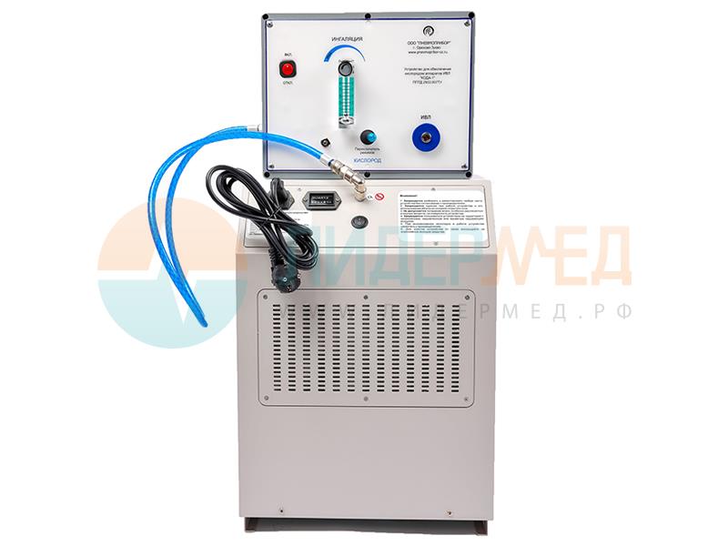 К фитингу "ж" регулятора расхода подсоединить аппарат ИВЛ, работающий от давления кислорода на входе 0,05 МПа ± 0,015 МПа. Подача кислорода составит 6 л/мин.