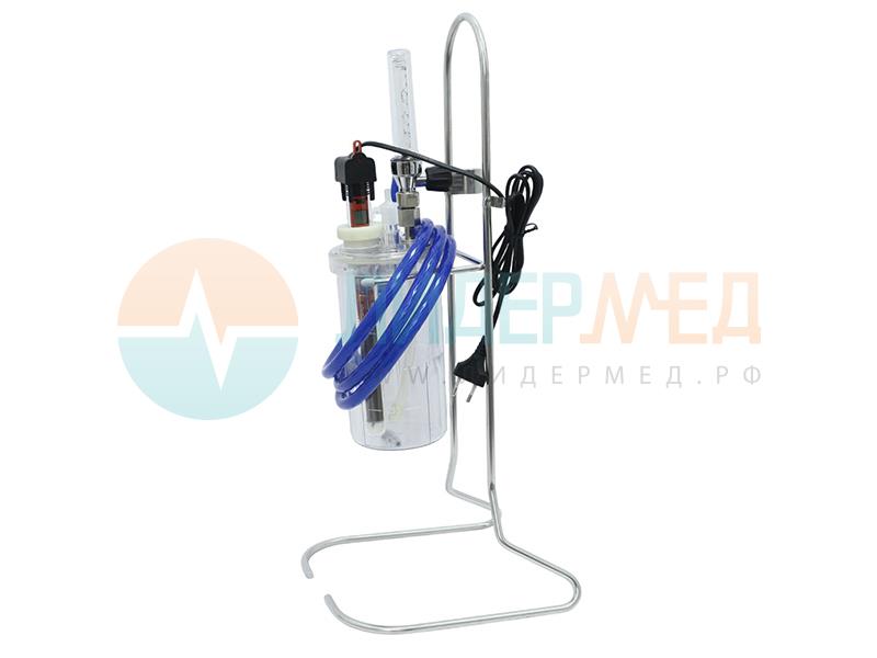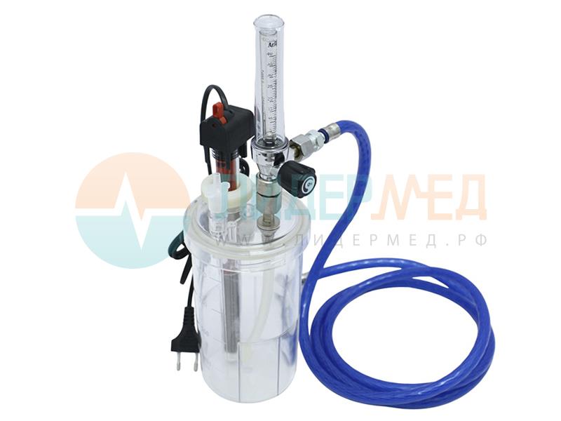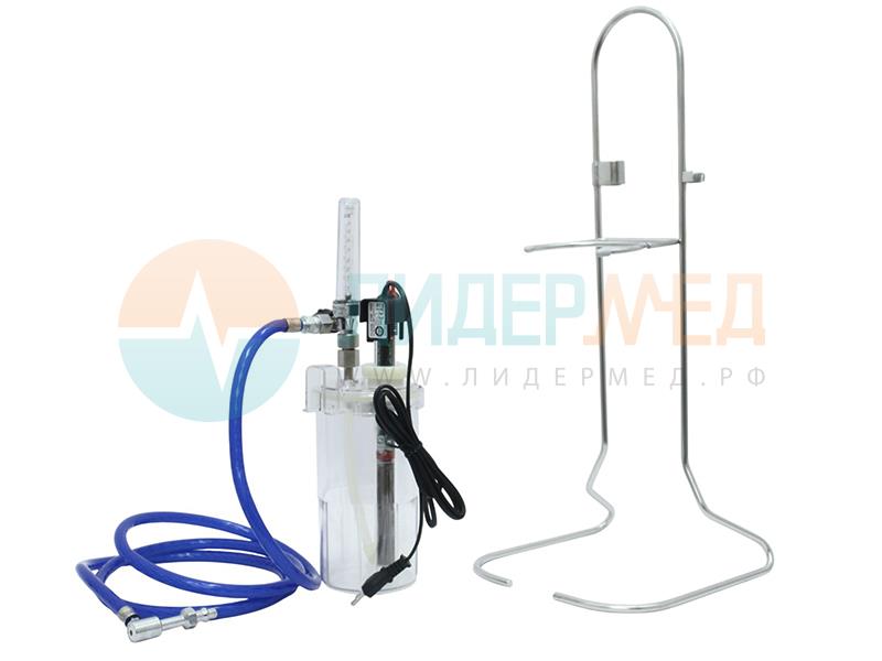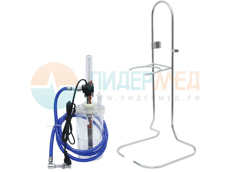 Увлажнитель пузырькового типа с подключением в кислородному клапану с помощью шланга со штекером стандарта DIN. Навешивается на шину консоли.Предназначен для регулируемой подачи к пациенту кислорода с одновременным его увлажнением методом пропускания через дистиллированную воду.Элема-Н УК 1-1П, с накидной гайкой М16х1,5 и съемным шлангом для подключения в кислородный клапан стандарта DIN, емкость автоклавируемая 1000 мл, с подогревом.
