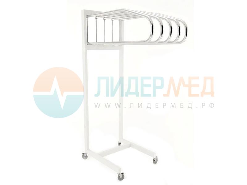 Вешалка для рентгензащитной одежды, предназначена для хранения фартуков в рентген кабинетах. Каркас: металл в полимере Плечики: нержавеющая сталь Габаритные размеры – 550х610х1540 мм.