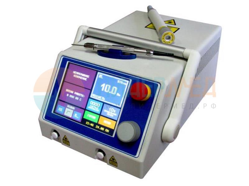 Лазерный аппарат для лечения варикозного расширения вен, для проведения процедуры эндовенозной лазерной коагуляции (ЭВЛК).Эффективность ЭВЛС определяется эффективностью поглощения лазерного излучения кровью и венозной стенкой. Наилучшими длинами волн на сегодняшний день признаны 950-980 нм и 1470 нм.Кровью больше поглощается длины волн 0,95-0,98 мкм, водой 1,47 мкм.Мощность излучения: 10 / 15 Вт.