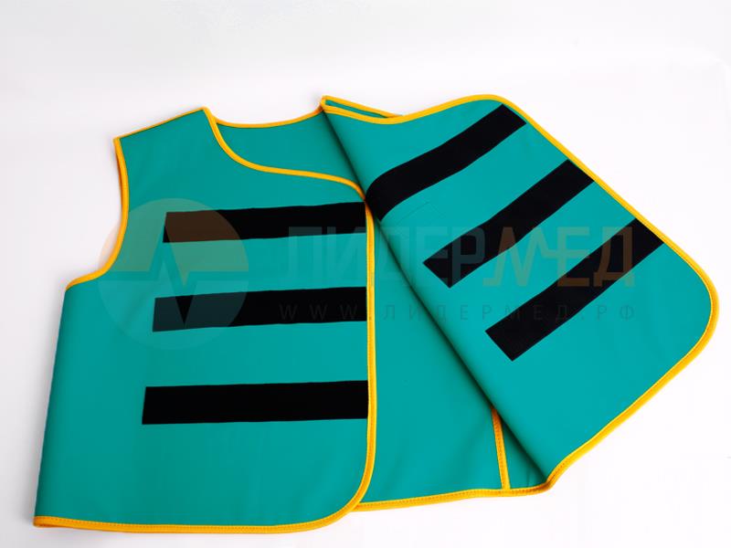 Жилет рентгенозащитный применяется во время проведения операций под рентгеновским контролем. Свинцовый эквивалент Pb 0.35+0.25 мм или 0.5+0.25Размер: MM (46-54), 61х146 мм. LM (56-60) SM (42-44).Рентгенозащитный материал: резина.Материал покрытия: винил (зелёный).Применяется для полной защиты верхней части тела персонала с обеихсторон во время проведения операций. "Застёжка- липучка".